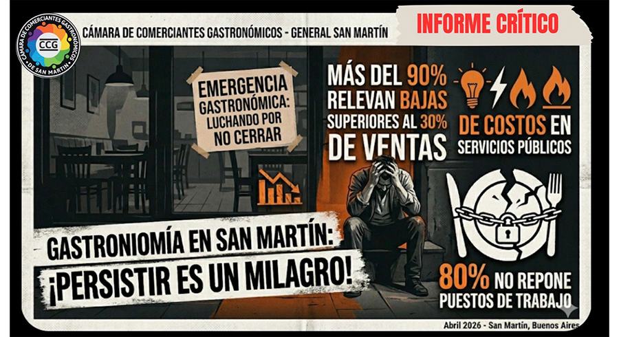 La Cámara -presidida por Diego Faggioli y Nancy Benedetto- compartió con este medio los resultados de una encuesta de emergencia realizada a los establecimientos gastronómicos de General San Martín, cuyos datos reflejan “una crisis de sostenibilidad sin precedentes que requiere intervención política inmediata”.